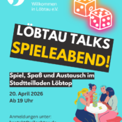 Liebe Freundinnen und Freunde 😊✨, am 20.04. ist es wieder so weit: Wir treffen uns um 19 Uhr im Stadtteilladen Löbtop (Gohliser Straße 1, 01159 Dresden) zu den Löbtau Talks 🏡💬 Neben guten Gesprächen, leckeren Keksen 🍪 und warmem Tee ☕ erwartet euch diesmal ein besonderes Ereignis: ein lustiger Spieleabend 🎲♟️🃏! Lasst uns gemeinsam lachen 😄, spielen und für ein paar Stunden den Alltagsstress vergessen 🌿✨ Kommt vorbei, bringt gute Laune mit 🎉 und gerne auch eure Lieblingsspiele oder Freundinnen